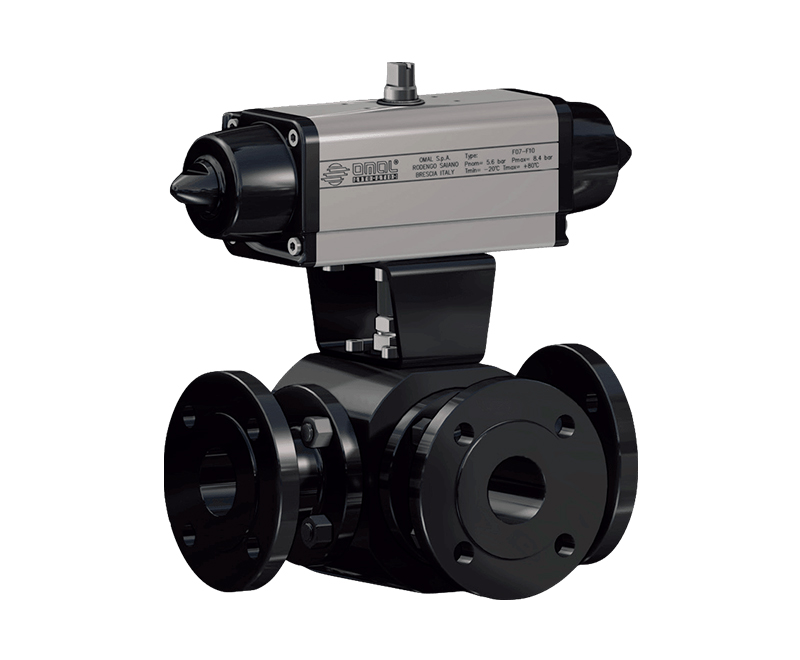 氣動三通球閥(碳鋼材質) 氣動對夾二片式法蘭球閥